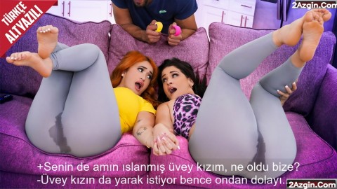 Transparan Tayt Giyen Üvey Kızının Amının Sulandığını Görünce Kendi Amı da Sırılsıklam Oldu